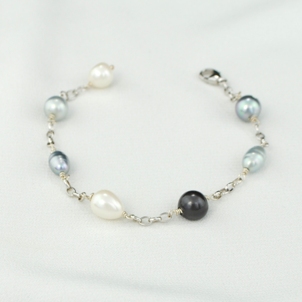 Réalisé avec des perles baroques de formes et couleurs assorties, il complète parfaitement une tenue sportswear ou habillée. Grâce à sa chaîne en Argent 925 rhodié ou plaqué Or réglable vous pourrez l'adapter facilement à votre poignet.