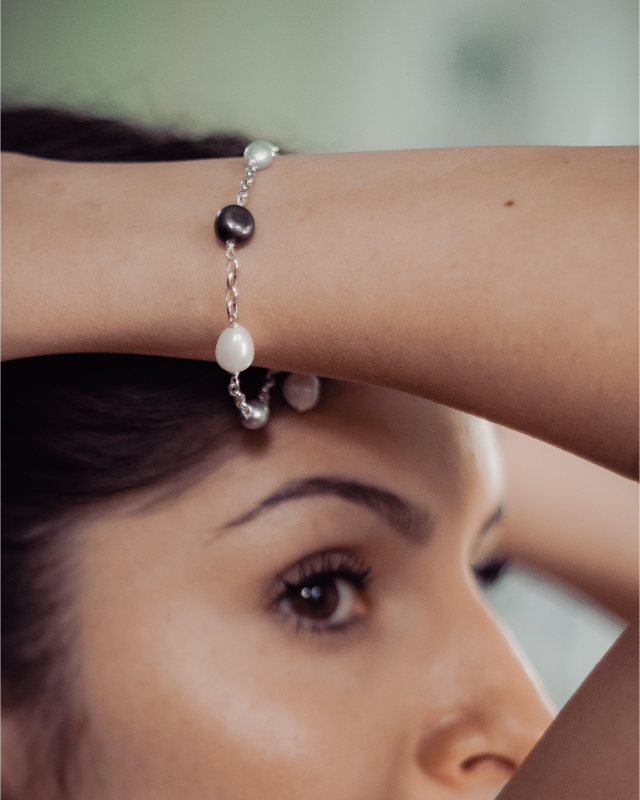 Bracelet élégant et raffiné en perles nuance de gris.